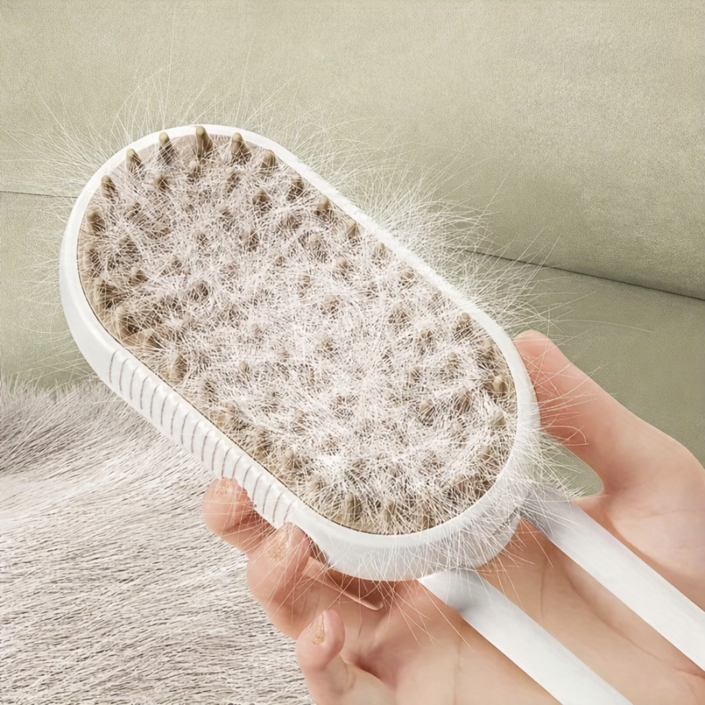 Szczotka jest GENIALNA! 💖 Miękkie silikonowe włosie idealnie zbiera sierść, nie lata po mieszkaniu i nie elektryzuje. Para wodna działa relaksująco na mojego kota – od razu widać, że mu się podoba. Polecam każdemu właścicielowi futrzaka!